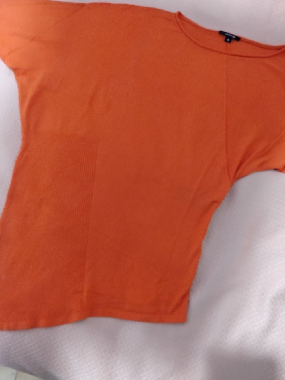 Maglioncino marca Comma e taglia 40,viscosa 65 per cento.Ha una forma un po' particolare,una manica più lunga dell'altra,simpatico.