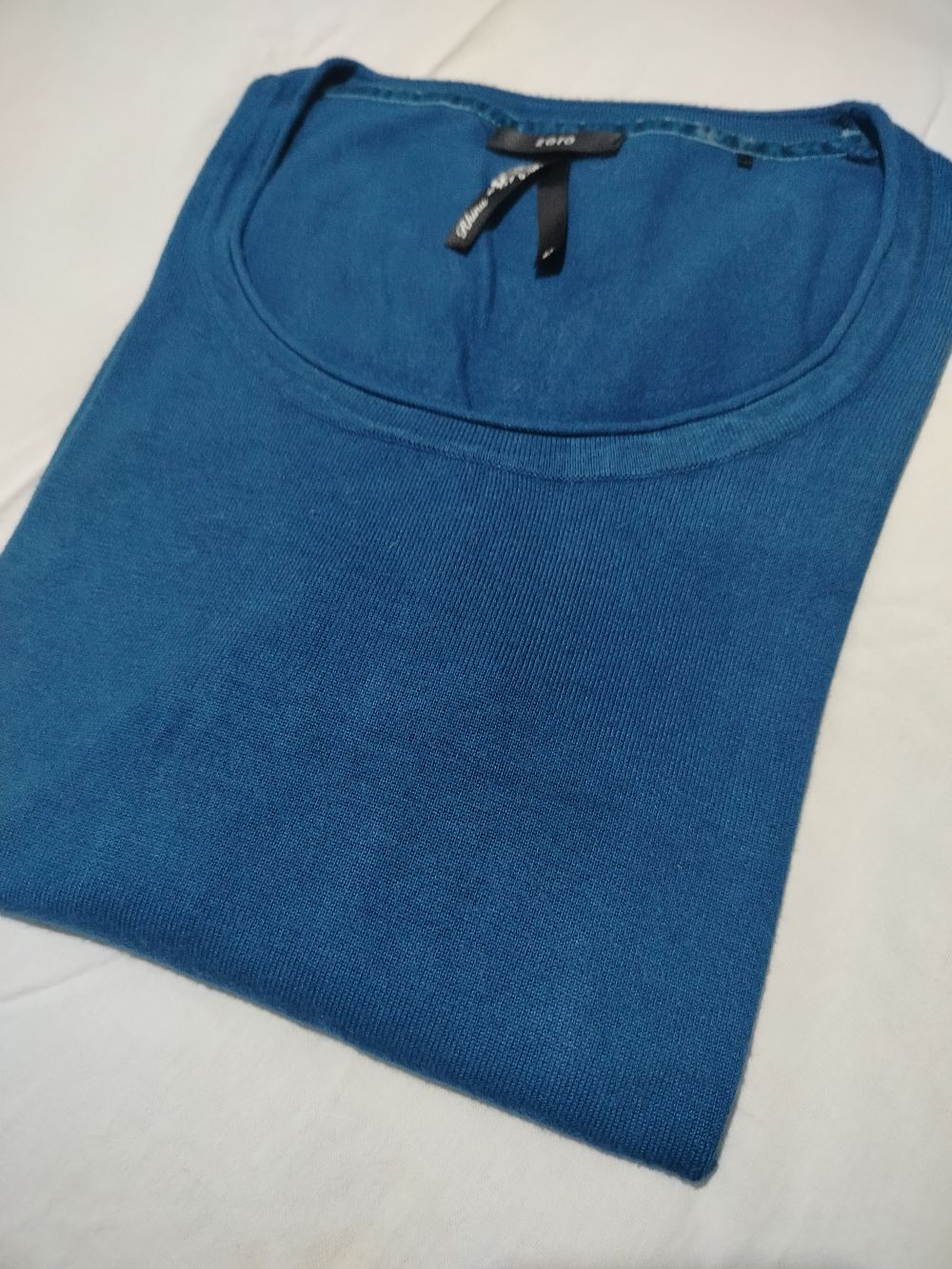 Descrizione:Maglioncino a maniche lunghe con collo aperto,taglia 43 spalle cm.39 e lunghezza cm.60.Marca Zero in viscosa/poliammide