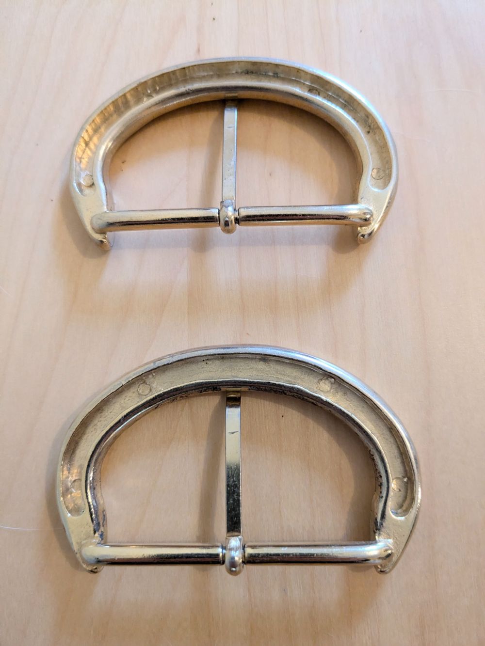 Descrizione:2 fibbie identiche in metallo dorato chiaro, qualche segno d'usura ma ancora pienamente sfruttabili. Volendo separo a 1 credito l'una