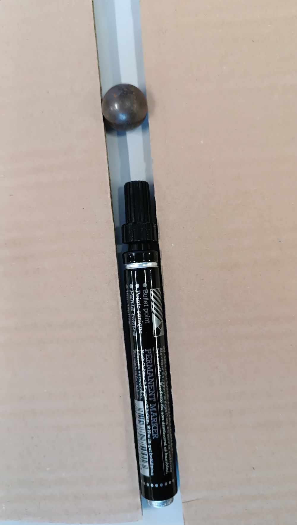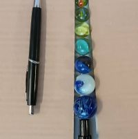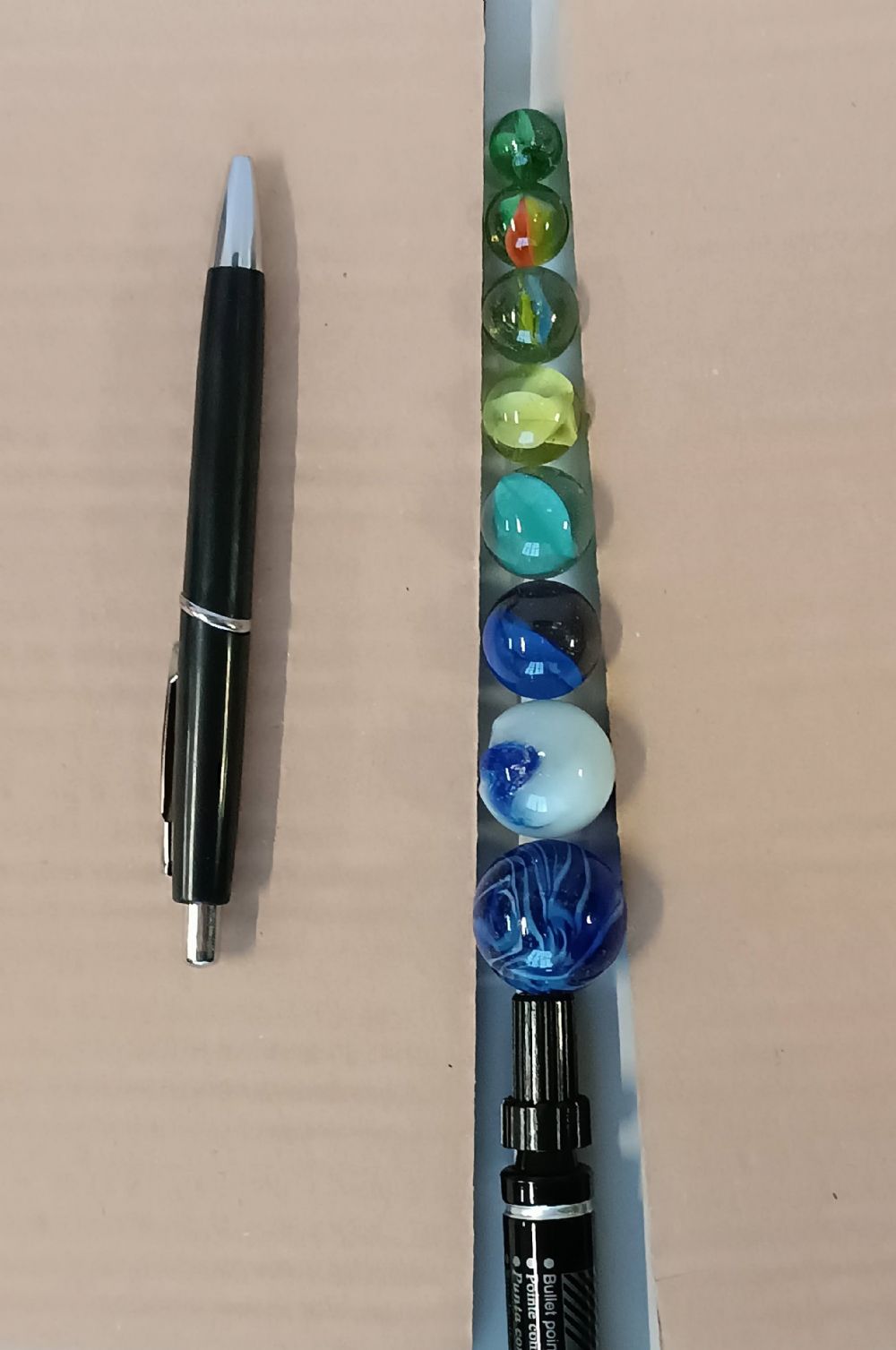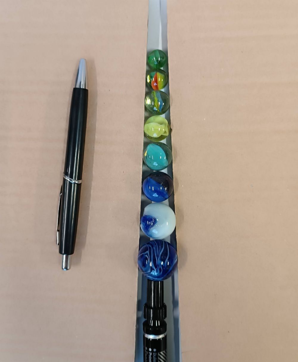8 biglie in vetro e 1 in acciaio, la grigia.