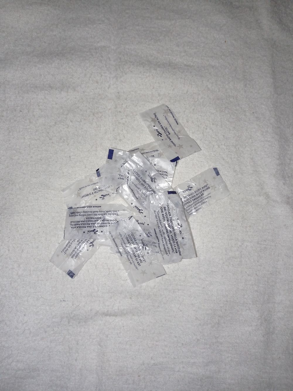 Una quindicina di cartine con le frasi dei Baci Perugina