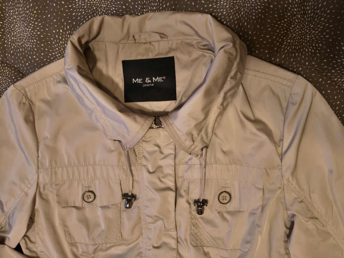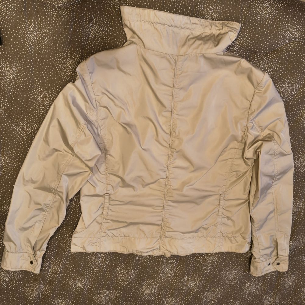 Descrizione:Giubbino sfoderato estivo/mezza stagione, taglia XL colore beige, anti pioggia, antivento.