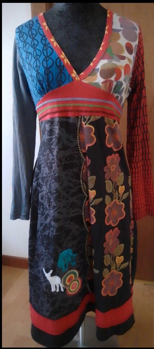 Abito donna midi cotone tg 44 con applicazioni