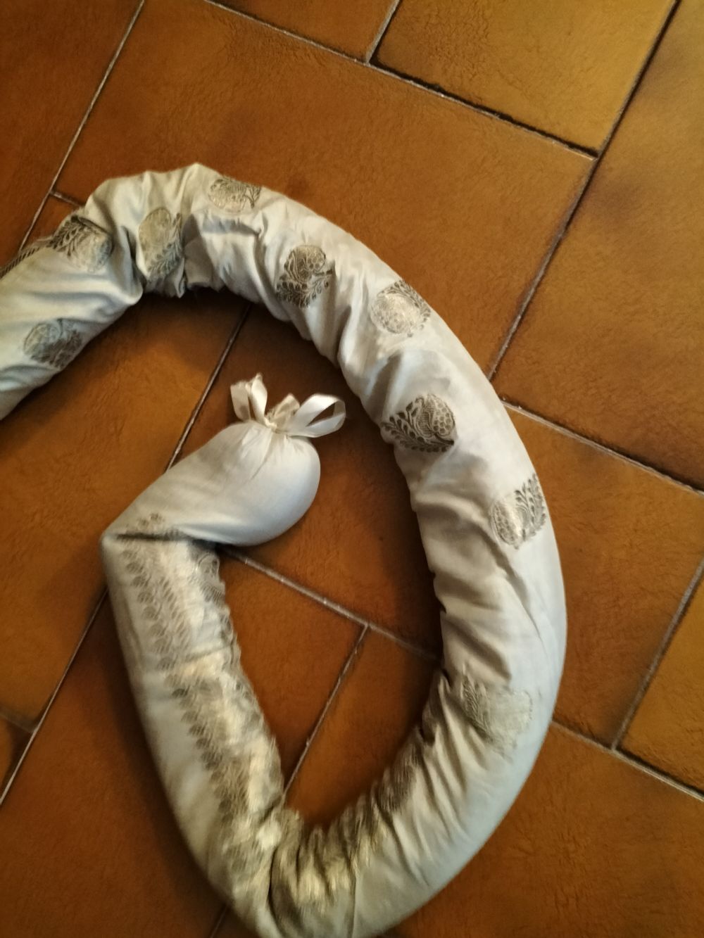 Descrizione:Tubo pieno di sabbia rivestito da sera indiana con ricamo dorati.