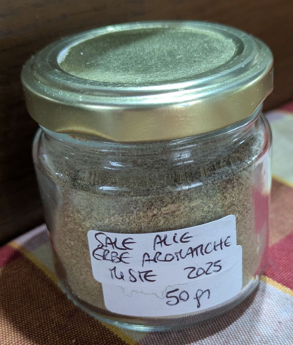 Descrizione:Sale alle erbe aromatiche miste di mia produzione 2025