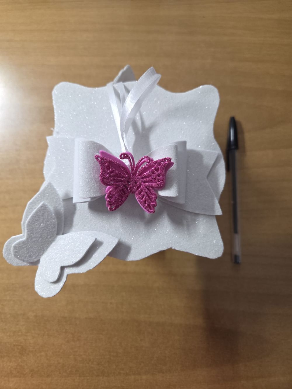 Simil lampada bianca in pannolenci con farfallina magnetica, cedo per liberare