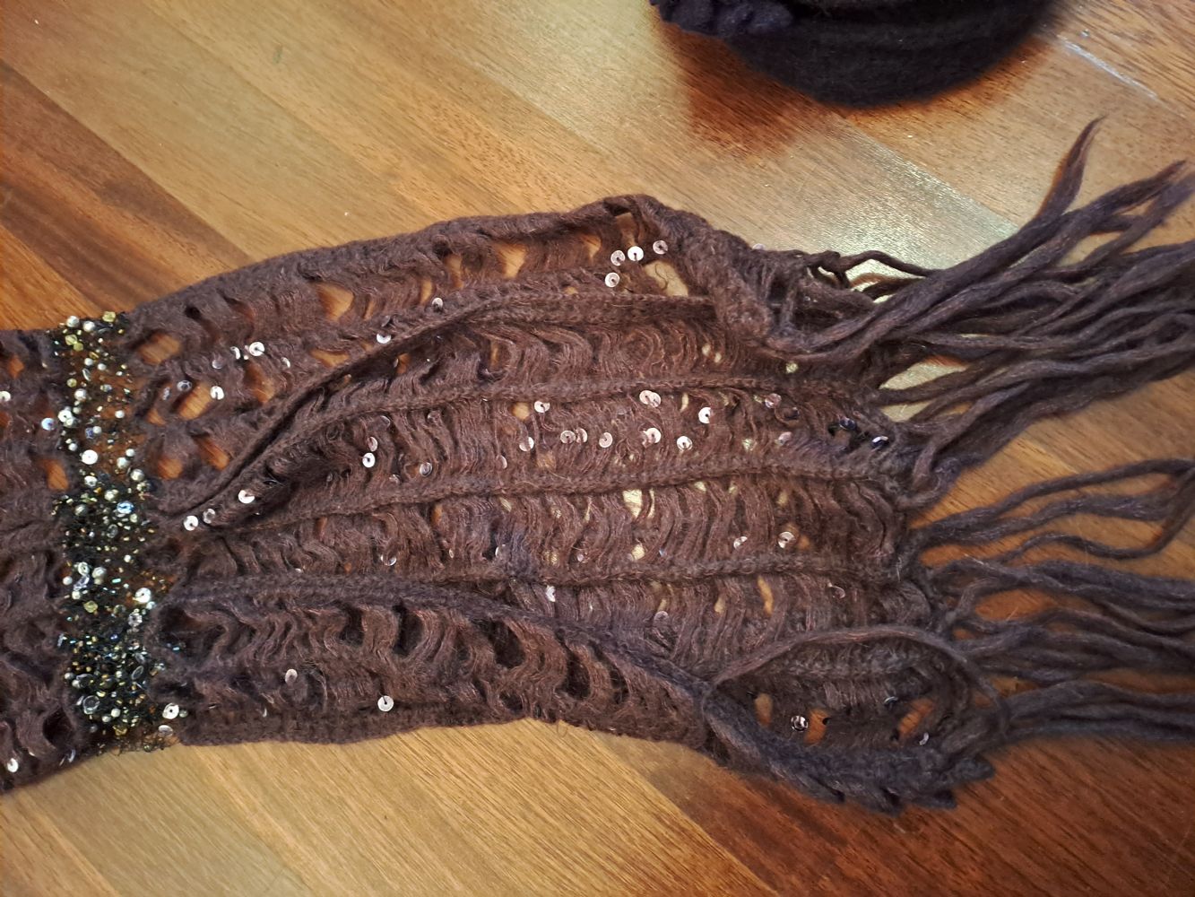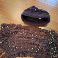 Sciarpa in lana con tante applicazioni in strass e paillettes , molto bella , viola scuro