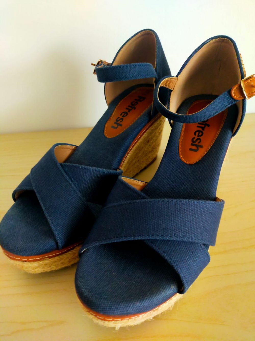 Sandalo Blue Jeans e corda, zeppa 8cm