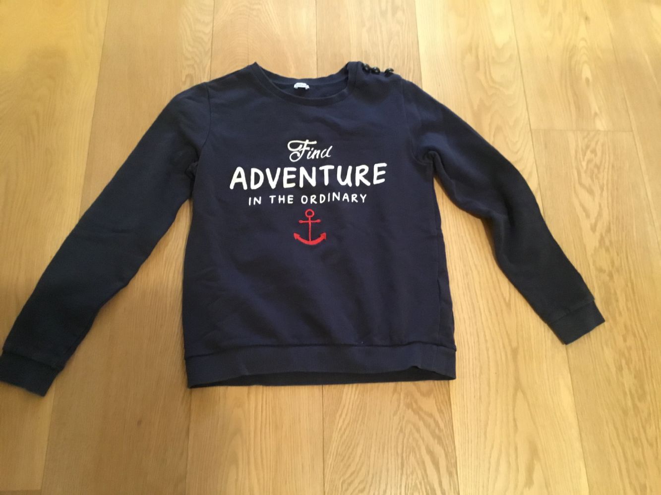 Descrizione:Felpa blu scuro a girocollo, marca Pimkie, con 3 bottoni su spalla sinistra.