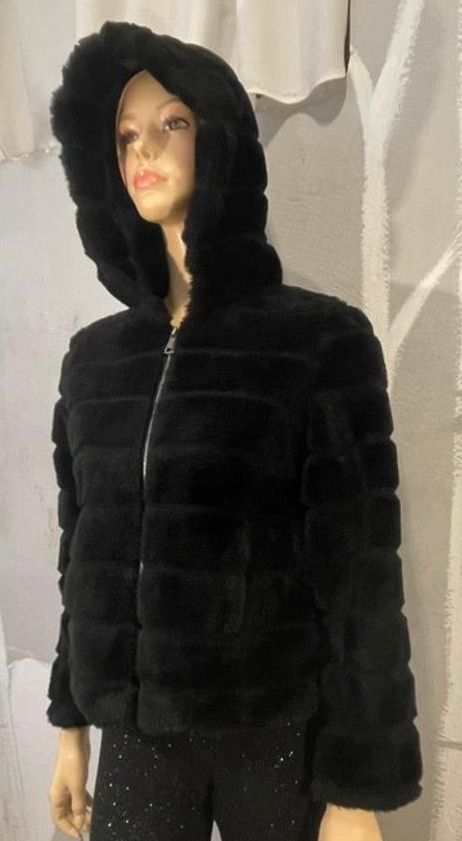 - cappotto nero con cappuccio tipo pellicciotto* es. foto tg s/m, 40/42