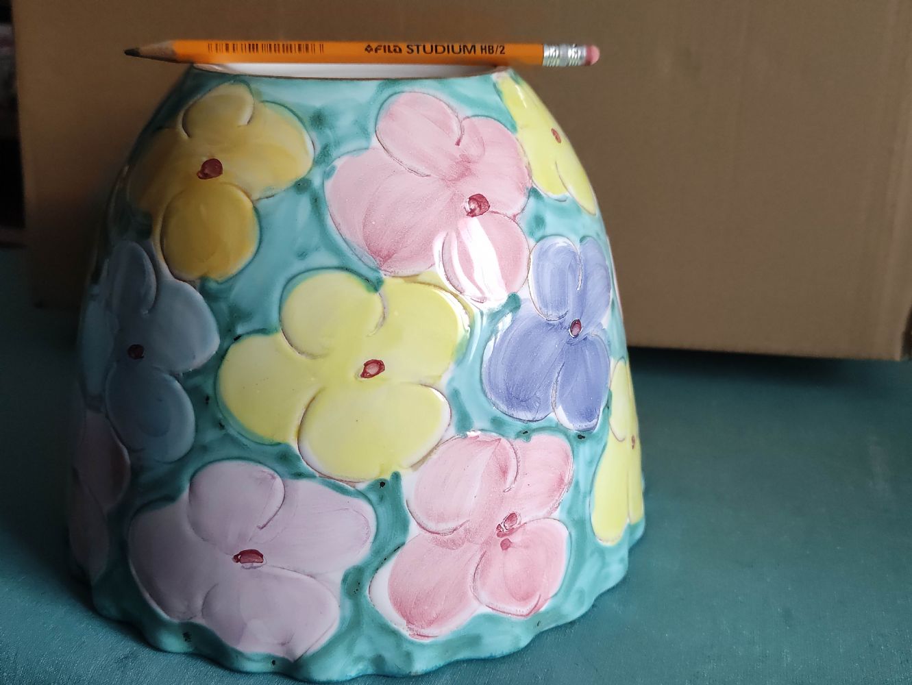 Descrizione:Matita per le dimensioni che comunque sono: diametro superiore cm 21,5 diametro inferiore cm 10, altezza cm 16/17