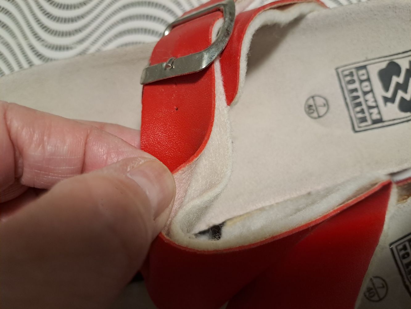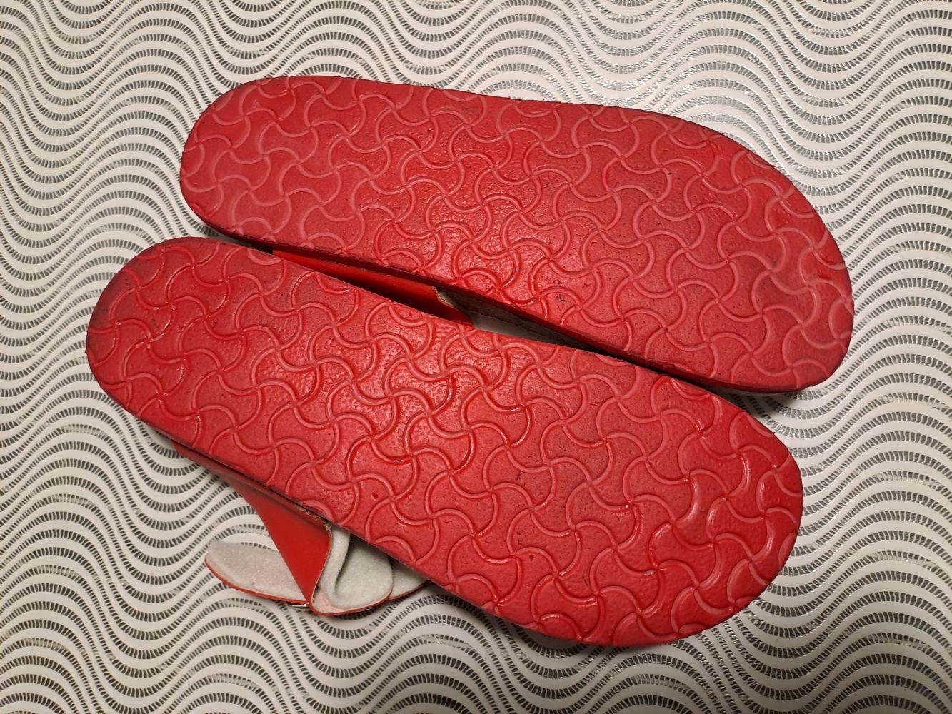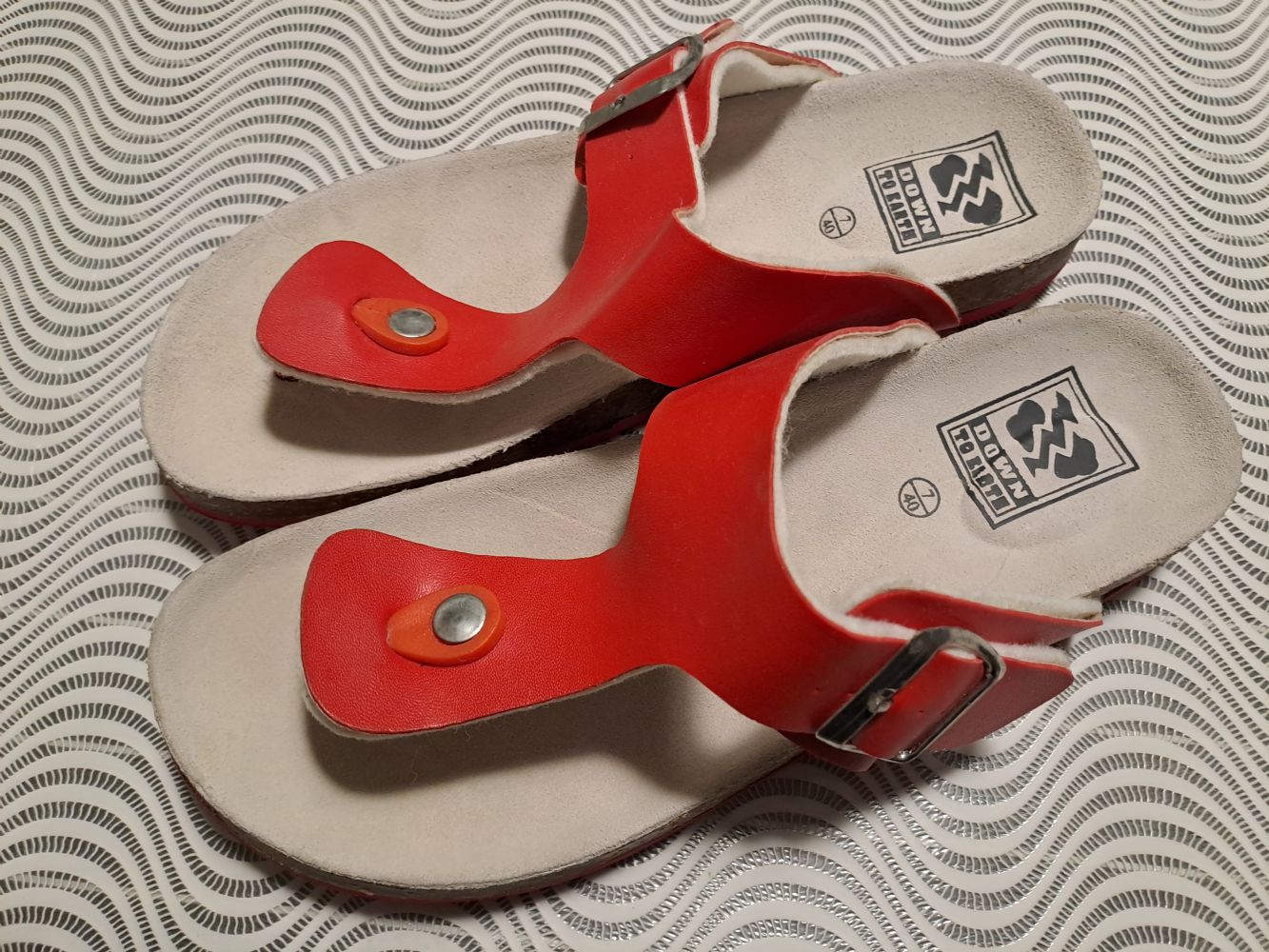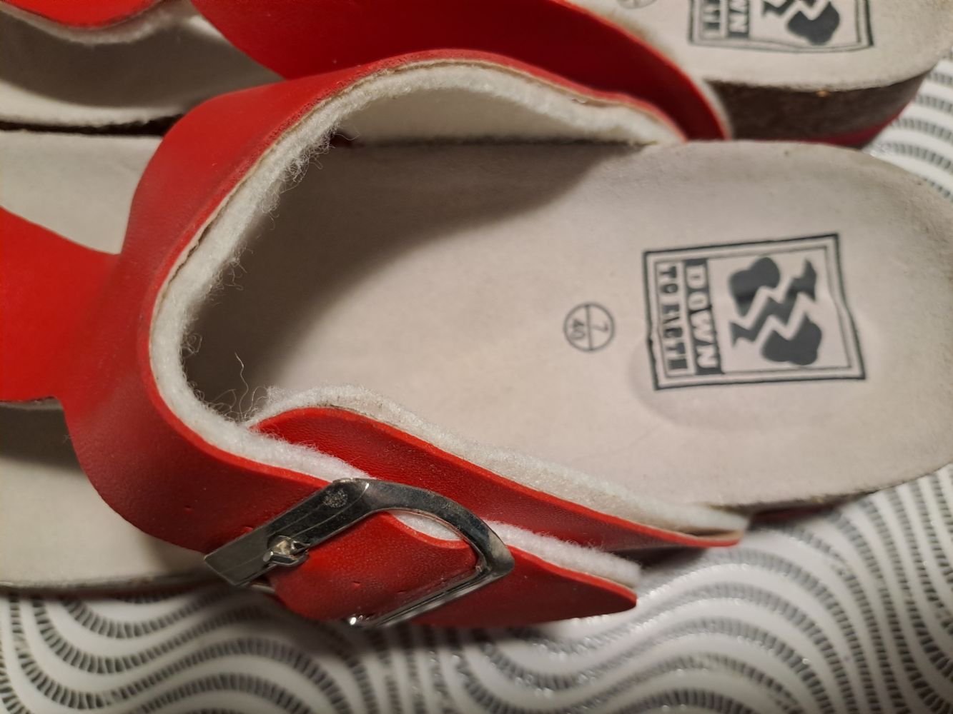 Descrizione:Un paio di infradito usate solo una volta, numero 40, suola in sughero. Cinturino regolabile, unica segnalazione : la fodera del cinturino si sta staccando dalla parte rossa, problema facilmente risolvibile con un po di colla e di pazienza...