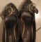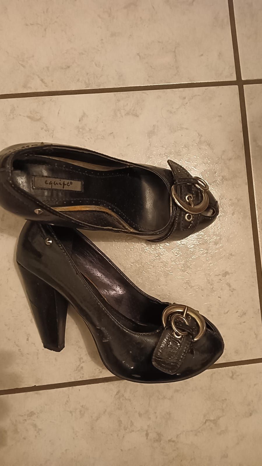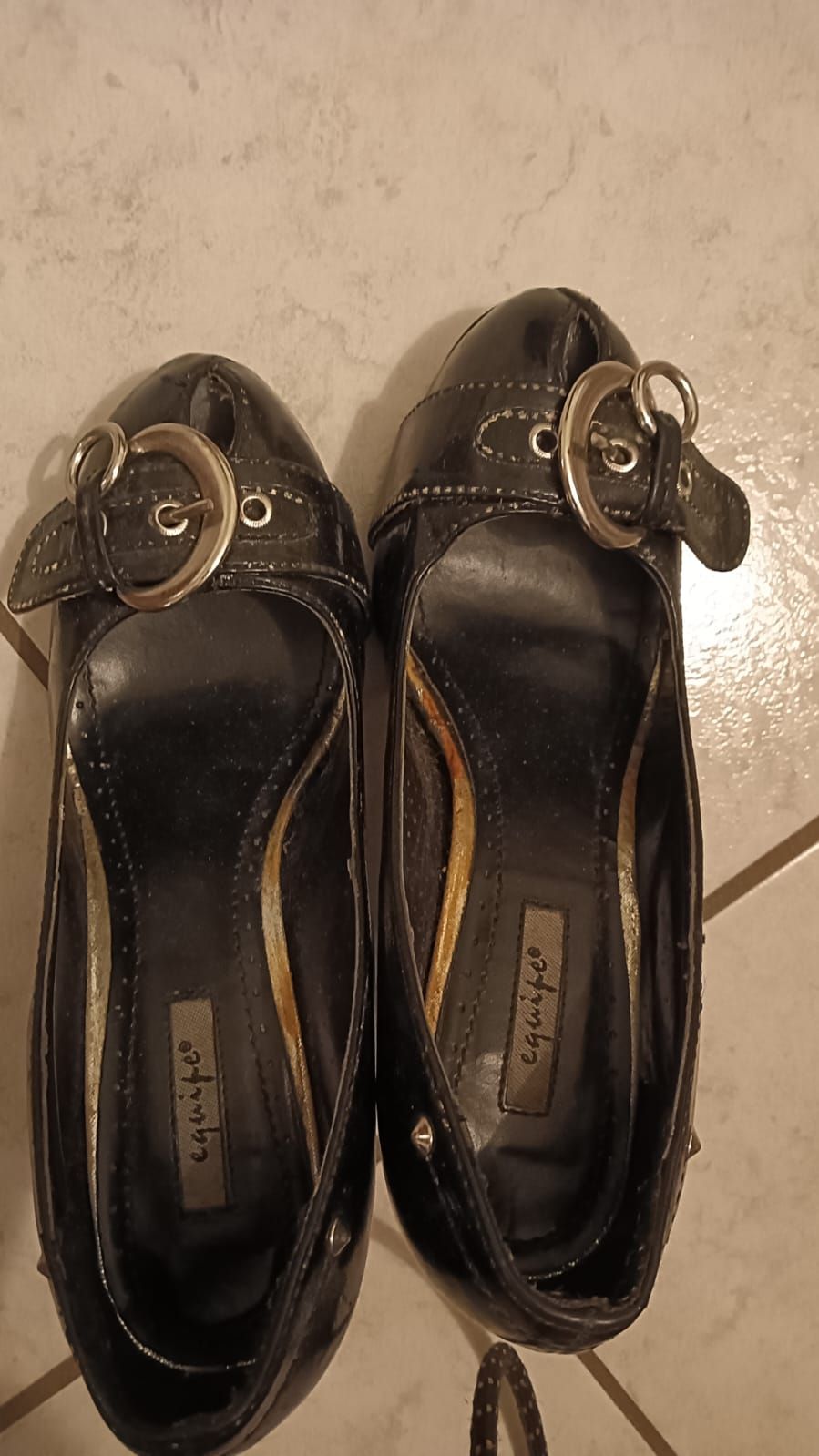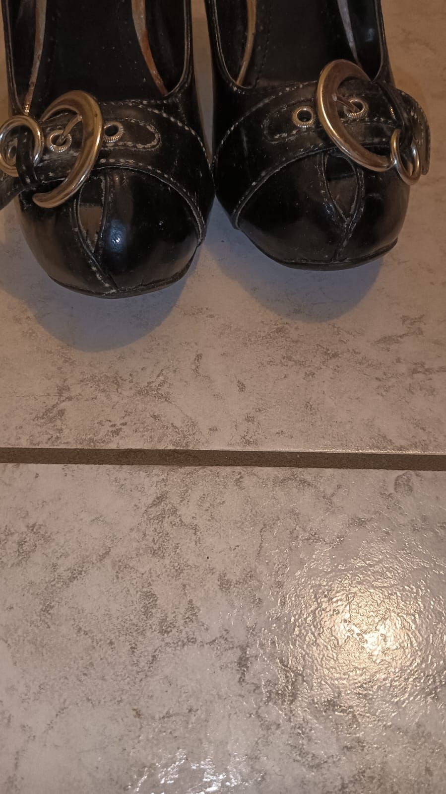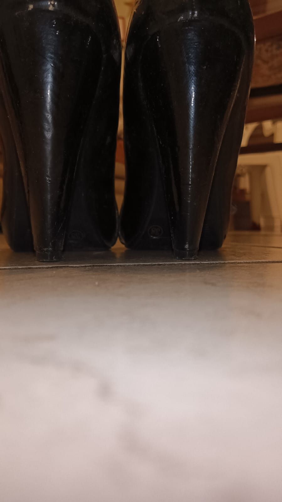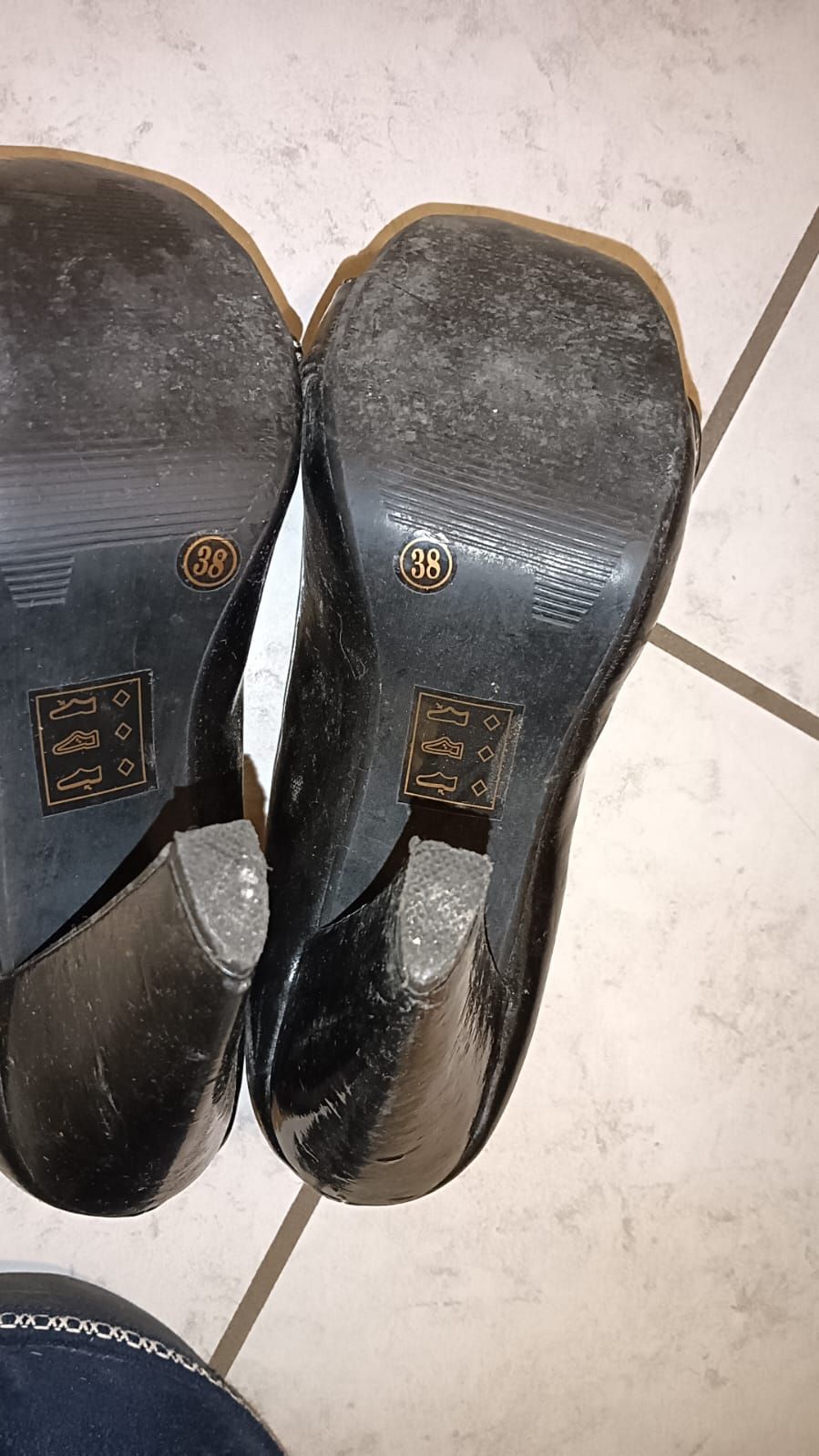non penso che siano pelle ,qualche segnetto ma ottime condizioni .Tacco 10 e zeppa 1