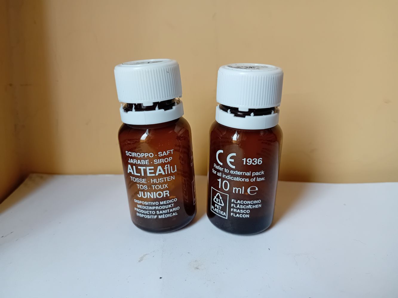 Da 10 ml, di plastica durissima che sembra quasi vetro. Presi qui e bevuti, contenevano sciroppo per la tosse. Uno è rimasto fuori foto, sono 3.