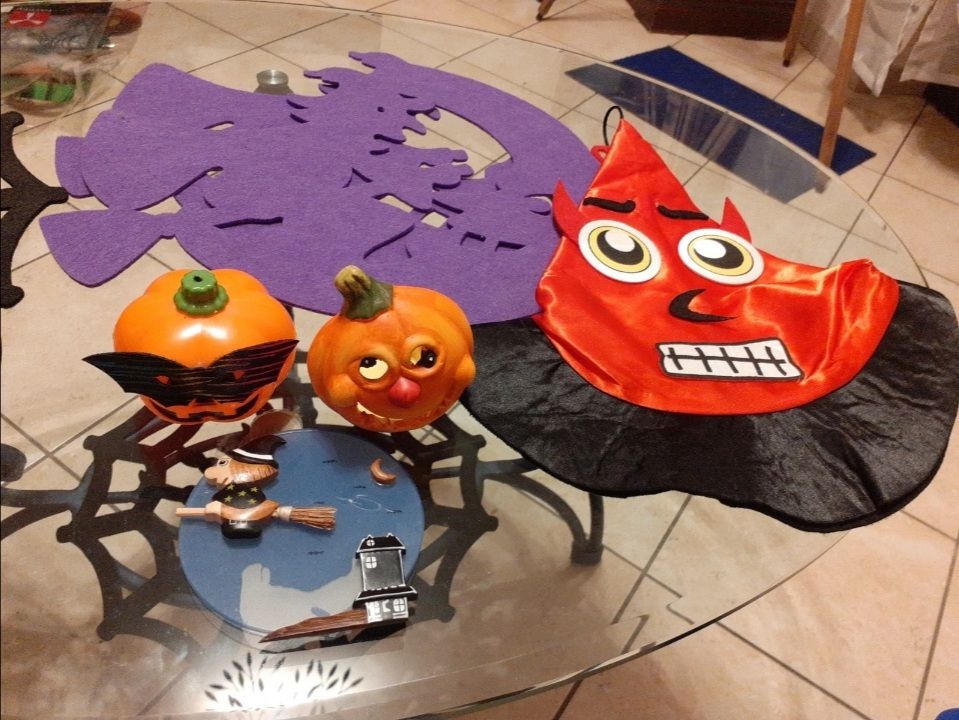 Lotto Halloween Con zucchette (una in plastica e una in terracotta), tovagliette in panno, cappellino, e varie come da foto