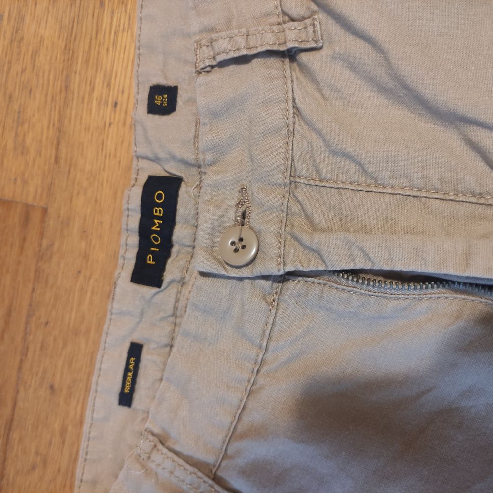 Pantaloni Piombo, regular fit, taglia 46, marrone chiaro estivo, 2 tasche davanti a dietro. Vita 36 cavallo dietro 33 dal cavallo al fondo 76 cm.credo misto cotone