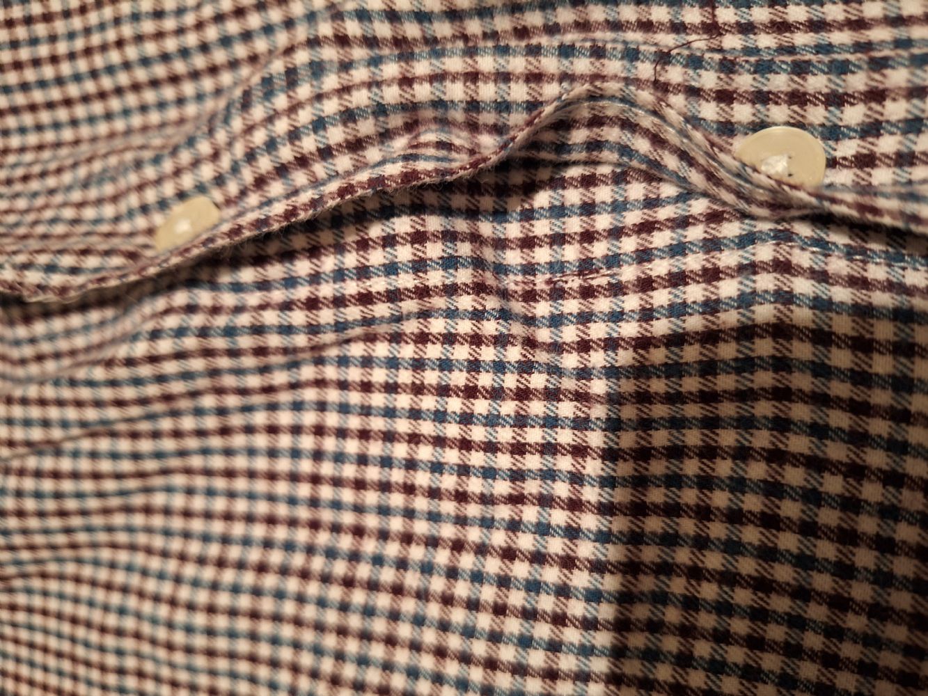 Descrizione:Camicia 100% cotone tipo flanella leggera. a quadretti. Andrebbeeo rinforzati i bottoni ed ha un punto in cui c'è un accumulo di filo.