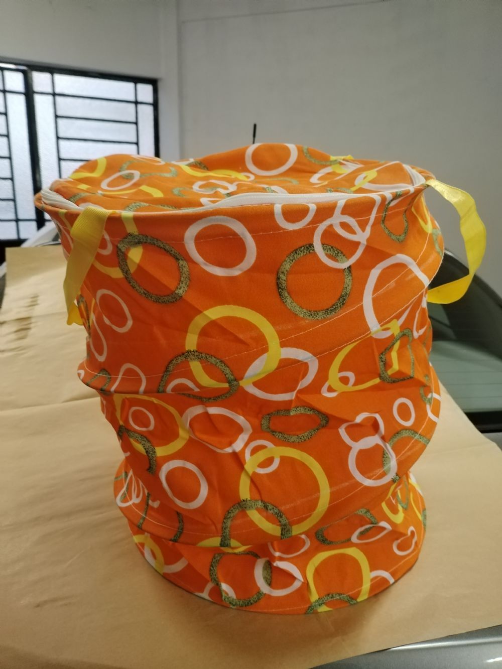Descrizione:Contenitore rotondo per bucato o quello che volete voi in stoffa arancione
