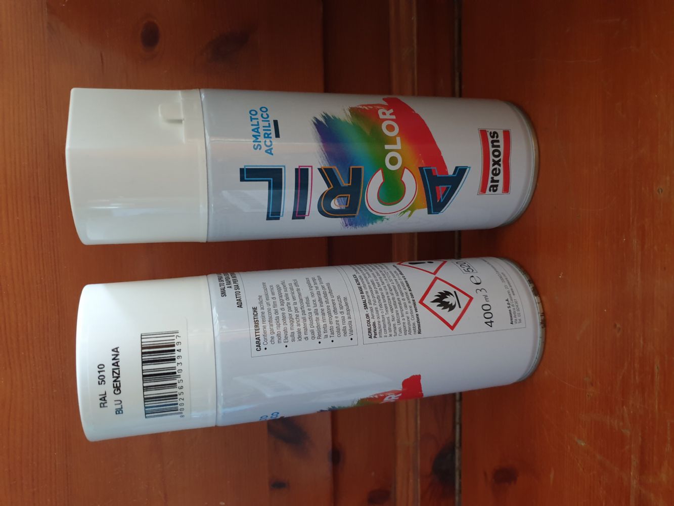 Descrizione:2 bombolette di vernice spray. Sono nuove sigillate, comprate tempo fa e mai utilizzate perché ho cambiato progetto