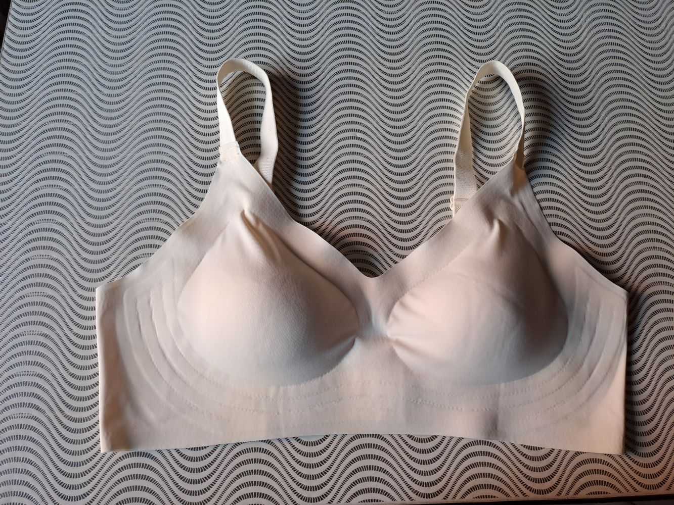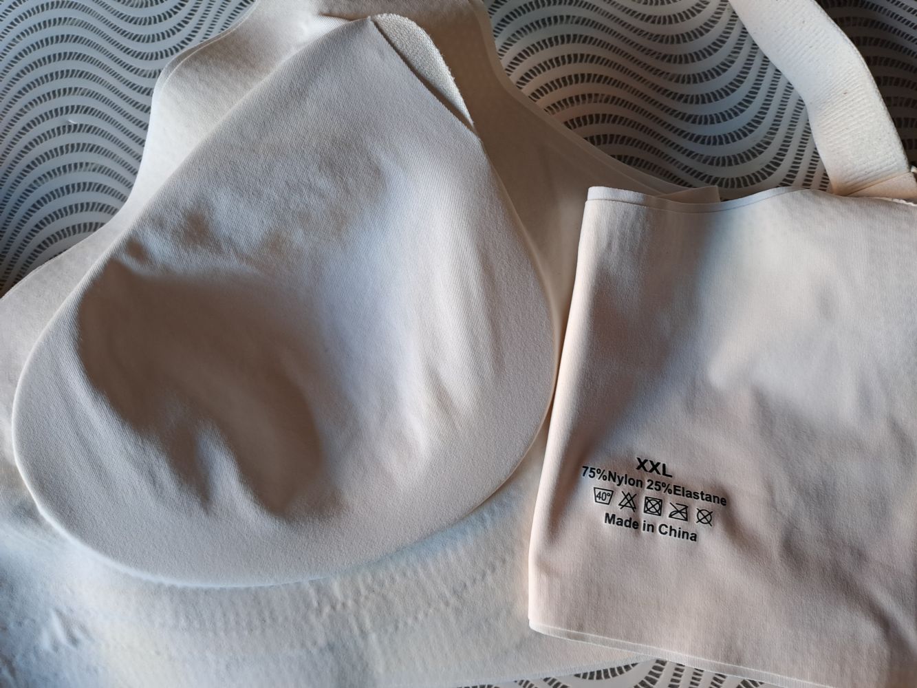 Descrizione:Reggiseno in nylon elasticizzato con coppe sfilatini, solo provato, taglia XL
