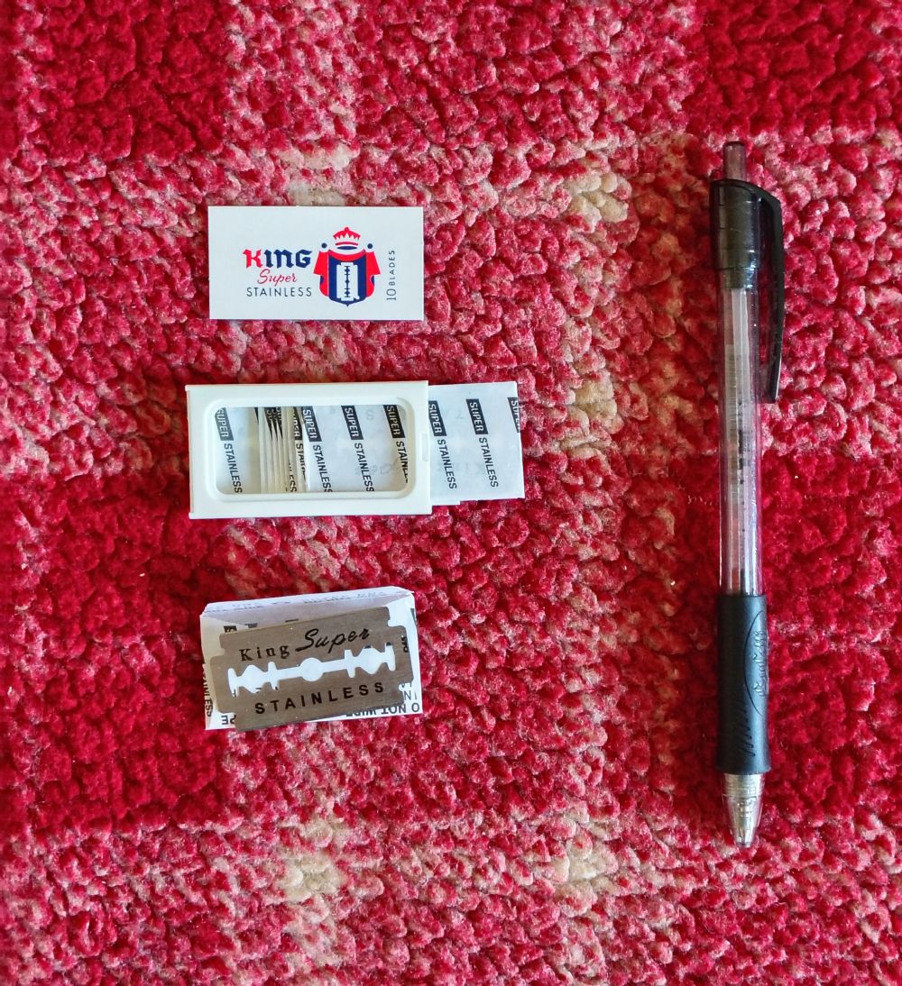 10 lamette king stainless in metallo confezionate singolarmente. Solo una l''ho aperta per vedere.