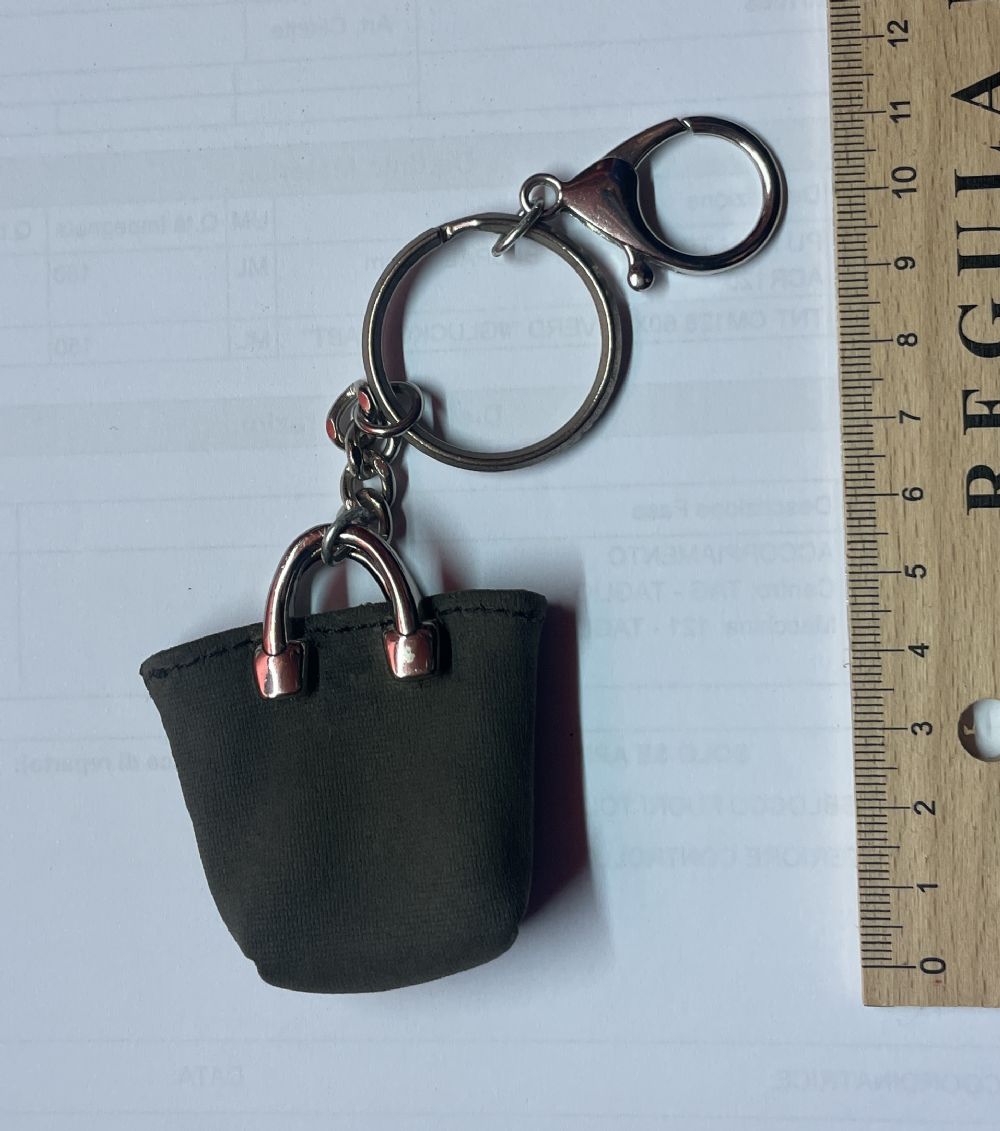Portachiavi a forma di borsina. In stoffa e metallo.