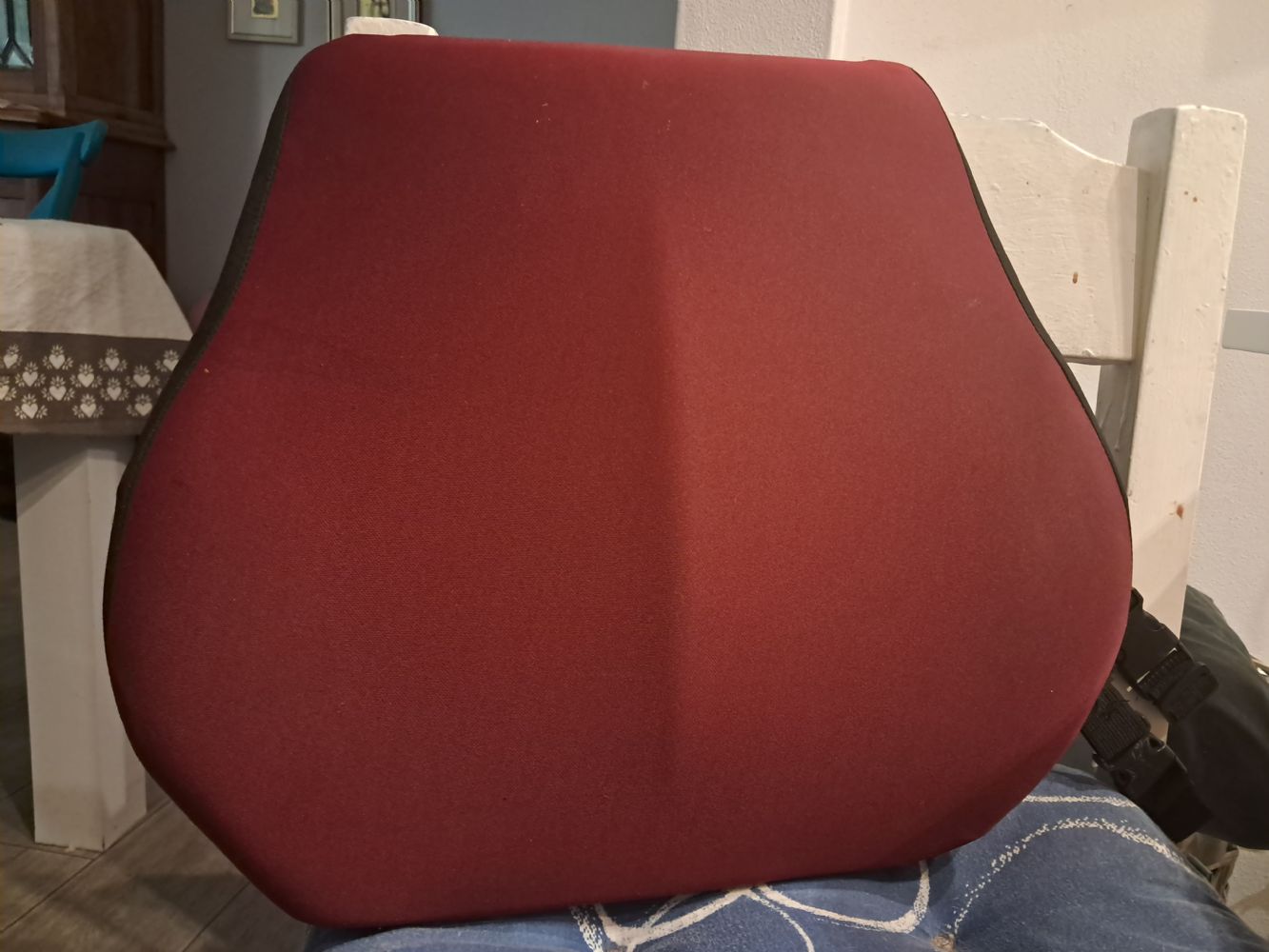 Descrizione:Sostegno per la fascia lombare per chi sta molto seduto, in macchina o in ufficio. Usato ma ora sostituito . Imbottitura tipo memoria.h 30 cm