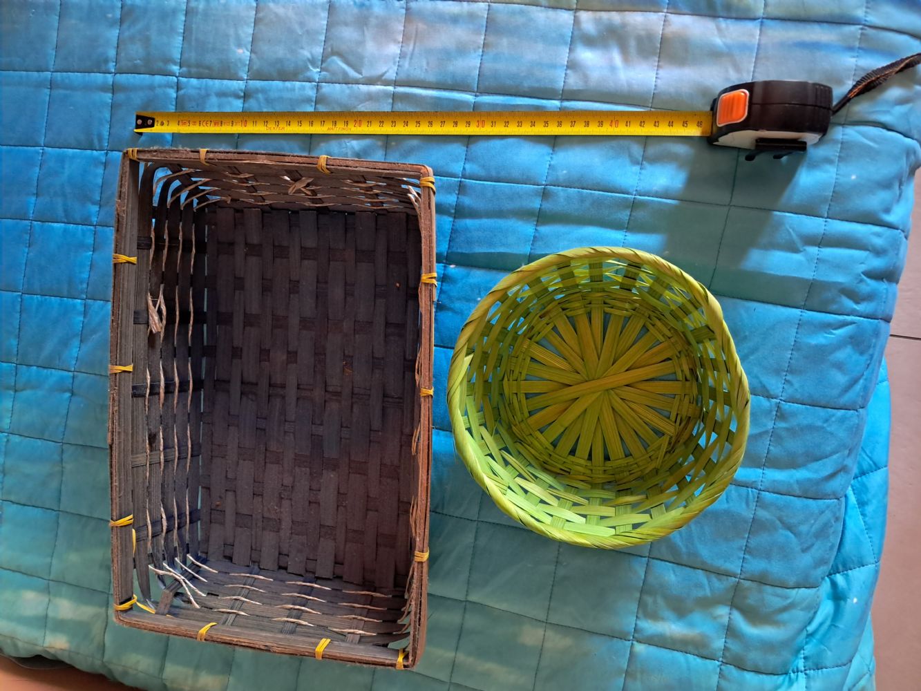 Descrizione:Coppia di cesti adatti ad essere riempiti di alimenti e fare un regalo. Dimensioni in foto. Entrambi 3 crediti
