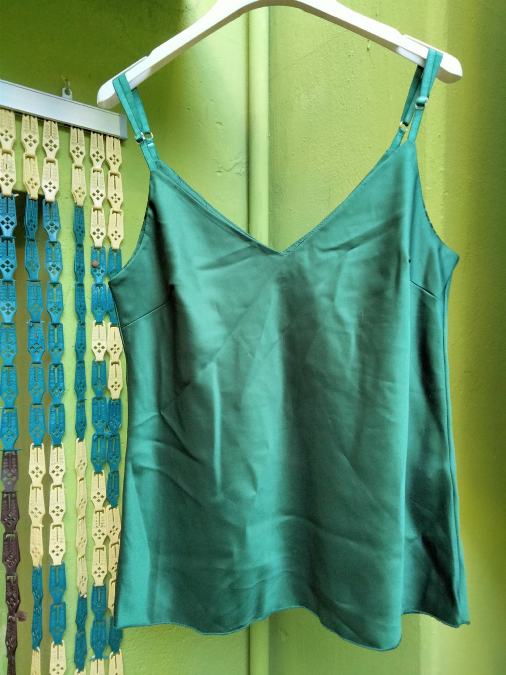 Descrizione:Canotta elegante, nuovo ma senza etichetta, colore verde scuro. 100% poliestere. Dovrebbe essere una S/M. Da ascella/ascella cm. 46. Da ascella in giù cm. 39. Le bretelle si possono stringere o allungare.