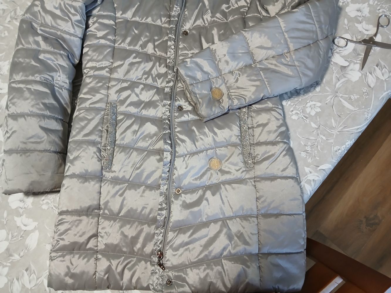 Descrizione: Giacca invernale lunga color argento 13 14 anni idexe 100%sintetico