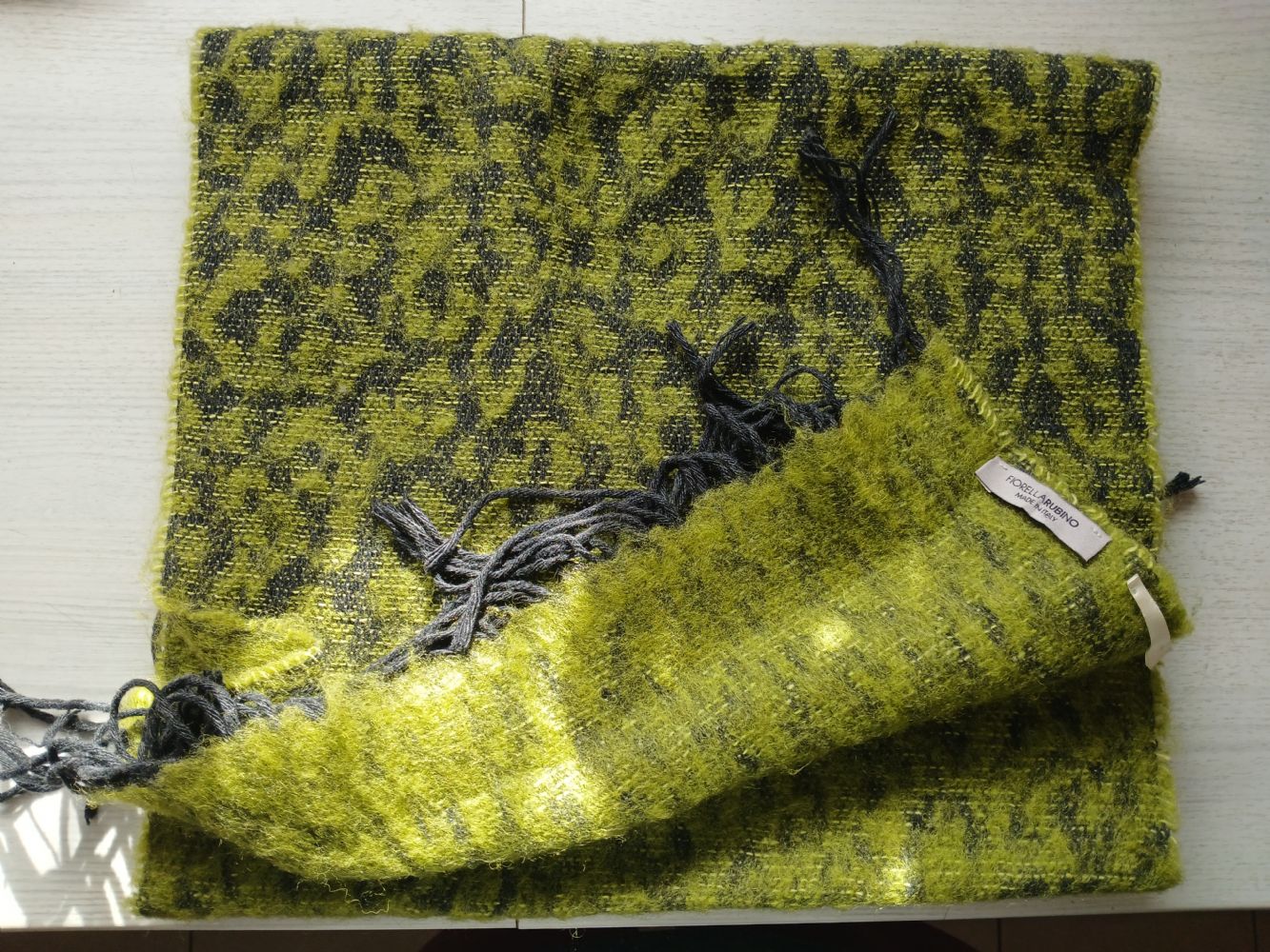 Descrizione:Misura 33x188, escluse frange. Purtroppo l'etichetta è stata tolta e non conosco la composizione, forse c'è una piccola percentuale di lana, ma non sono sicura, sento a pelle che non pizzica.