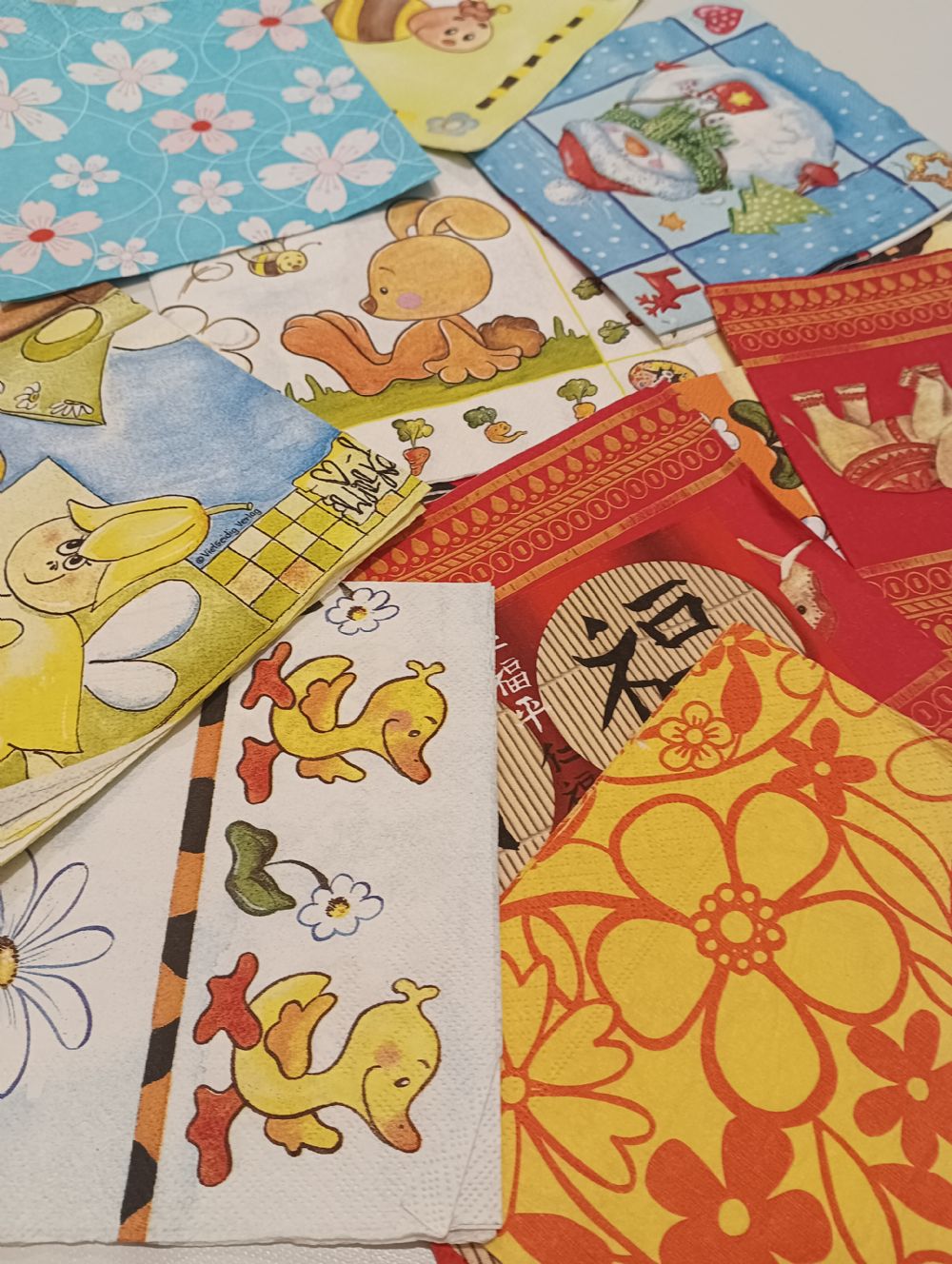 16 tovaglioli decoupage Con soggetti vari Molto colorati