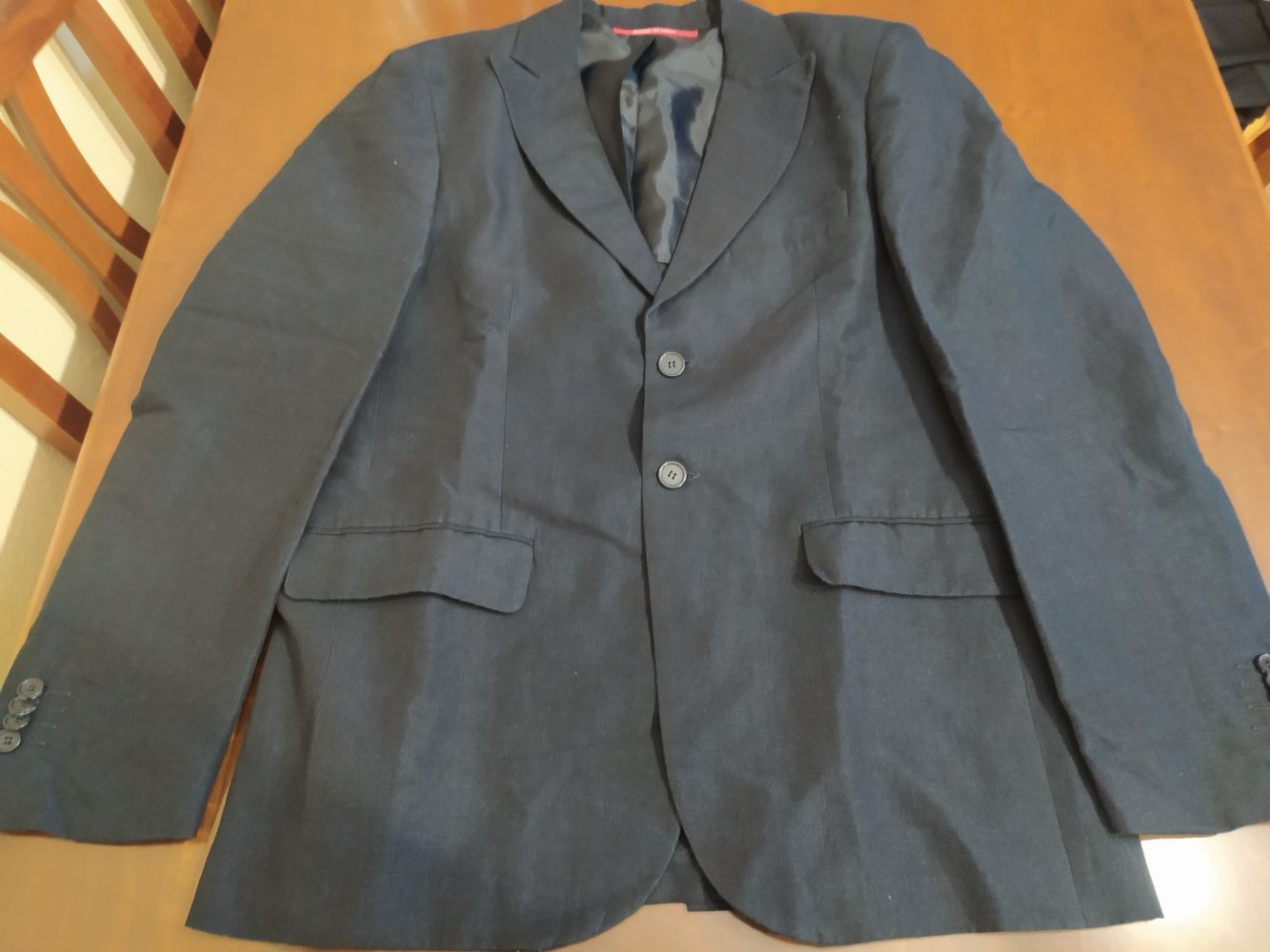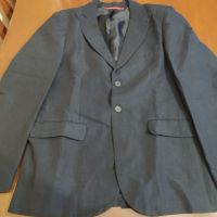 55% lino, 45% cotone, giacca spalle cm 43, ascelle cm 54, pantaloni vita cm 45, lunghezza cm 106.