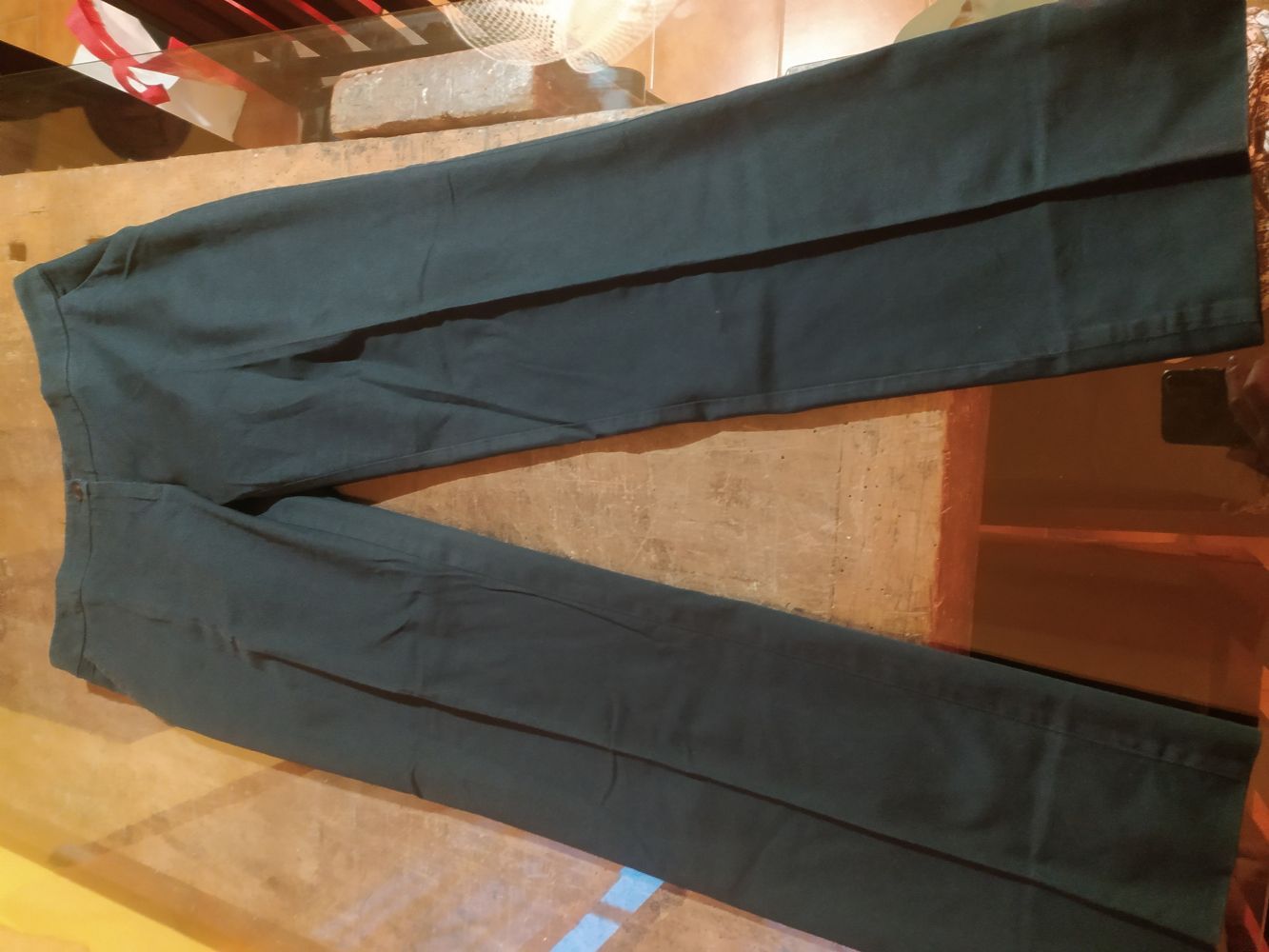 Tg 46 blu, leggermente scoloriti in vita (non si nota, basta mettere sopra la maglia), cotone, vita 39,5, lunghezza 98.