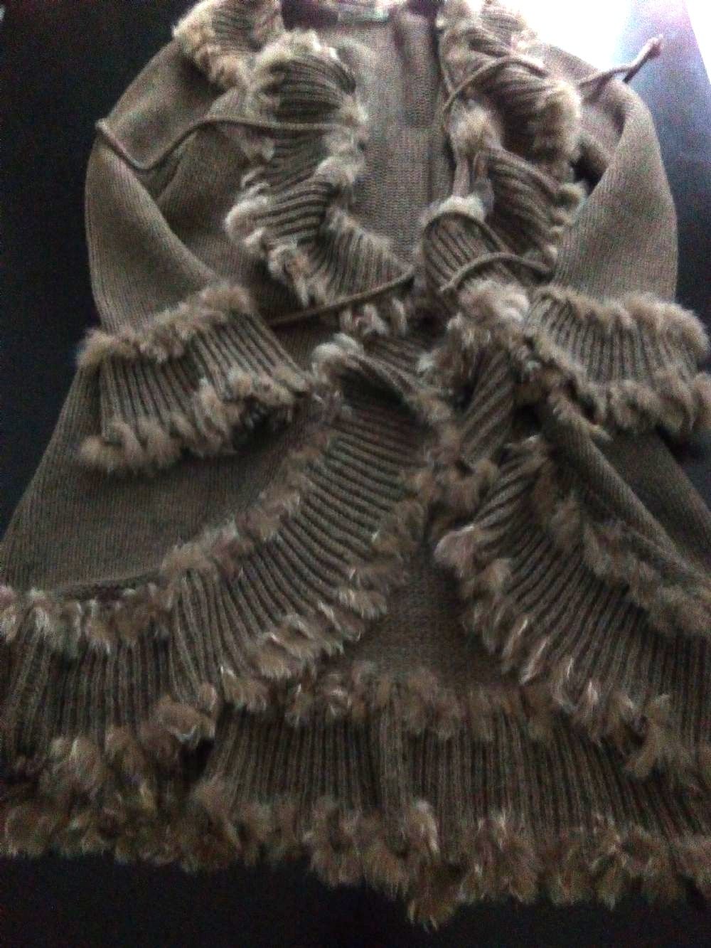 Cardigan come da foto, ottimo stato, morbido, caldo, lungo cm 100. Taglia 48/50. La rifinitura di pelliccia in qualche punto si è staccata, ma basta qualche punto di ago e filo (o con l'uncinetto) e va a posto