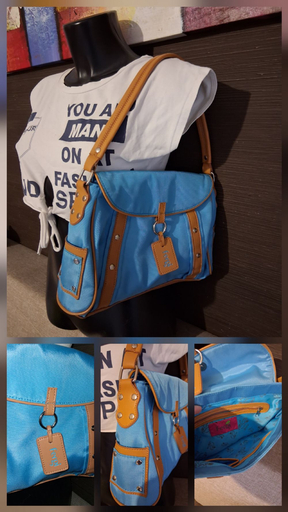 Descrizione:Borsa nuova senza cartellino, color azzurro misura media