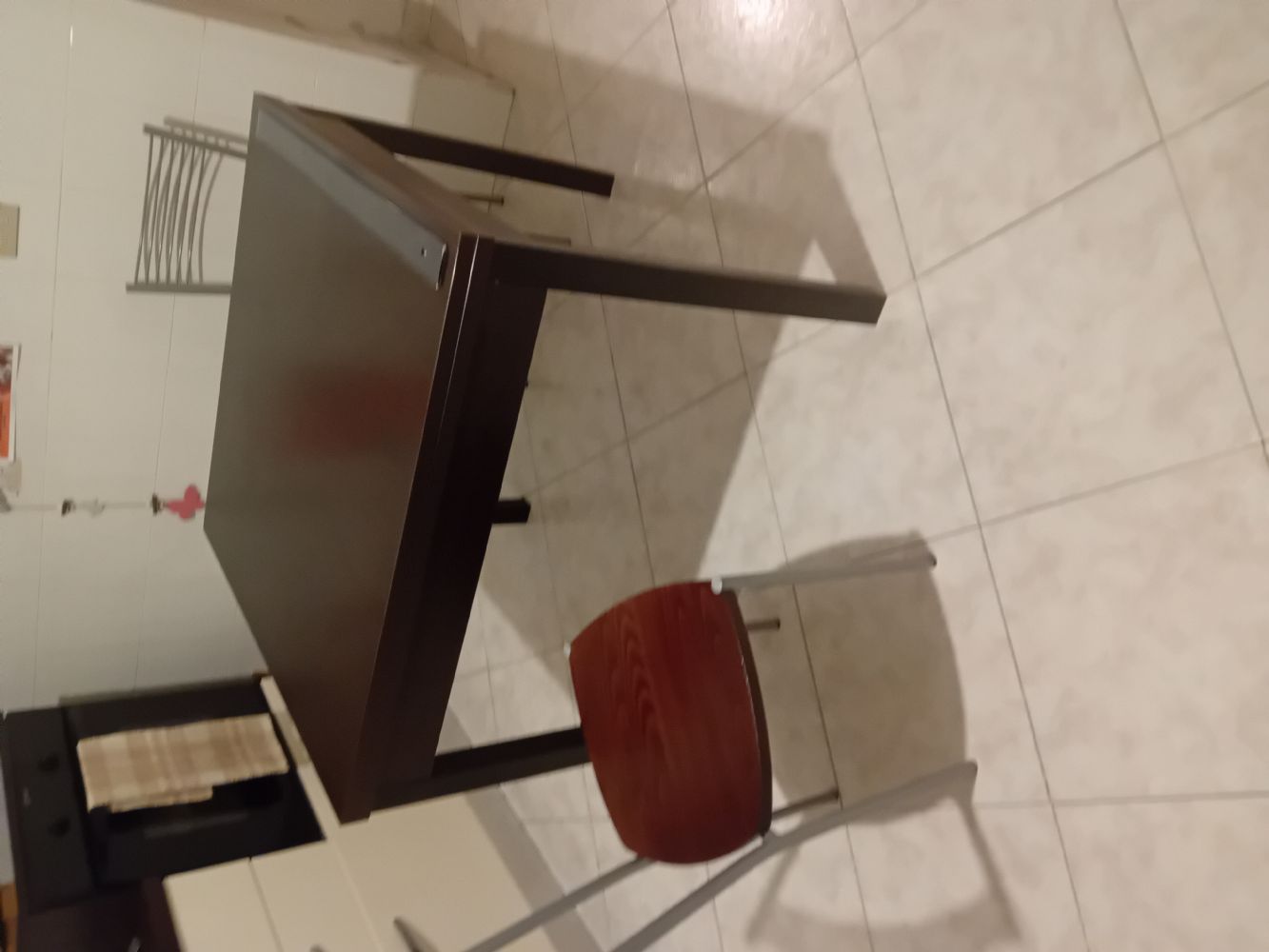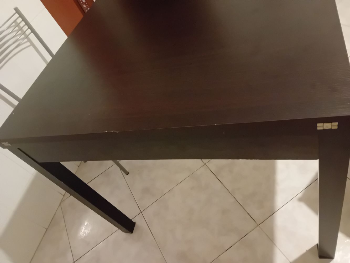Descrizione:100/100 robusto facile da smontare si può trasportare anche in macchina a libro ci sono dei segni ma con la tovagliq non si vedono da ritirate a porto ceresio
