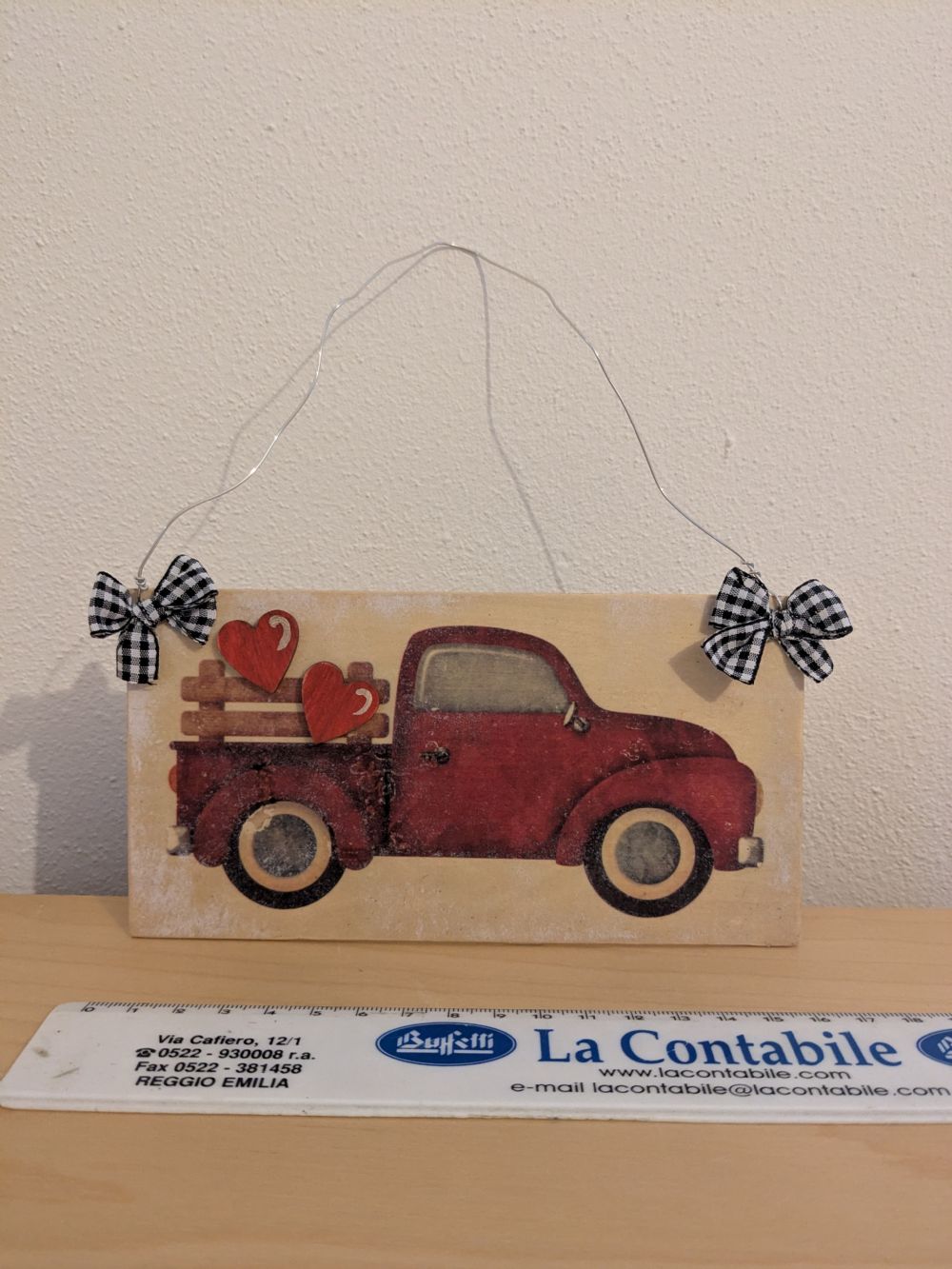 Descrizione:Targhetta da appendere realizzata a mano, in legno leggero.