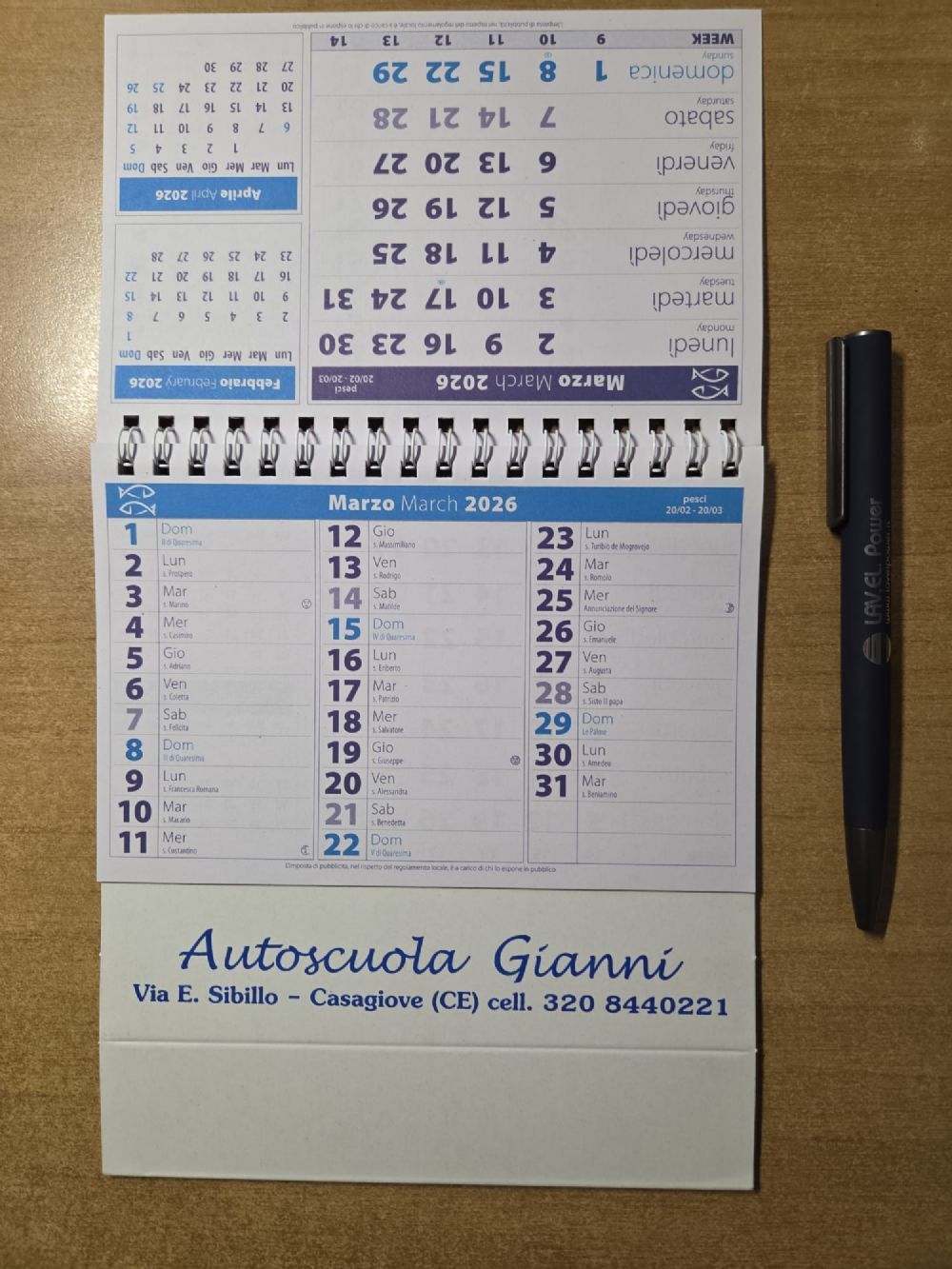 Calendario da tavolo 2026