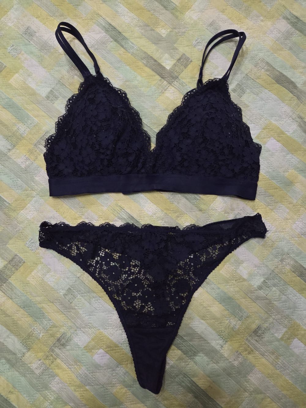 Perizoma e bralette pizzo blu marca H&M tg L, poliestere