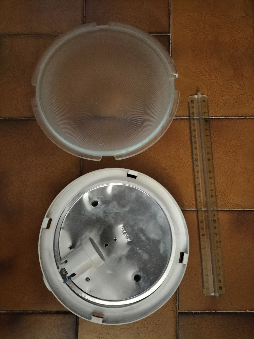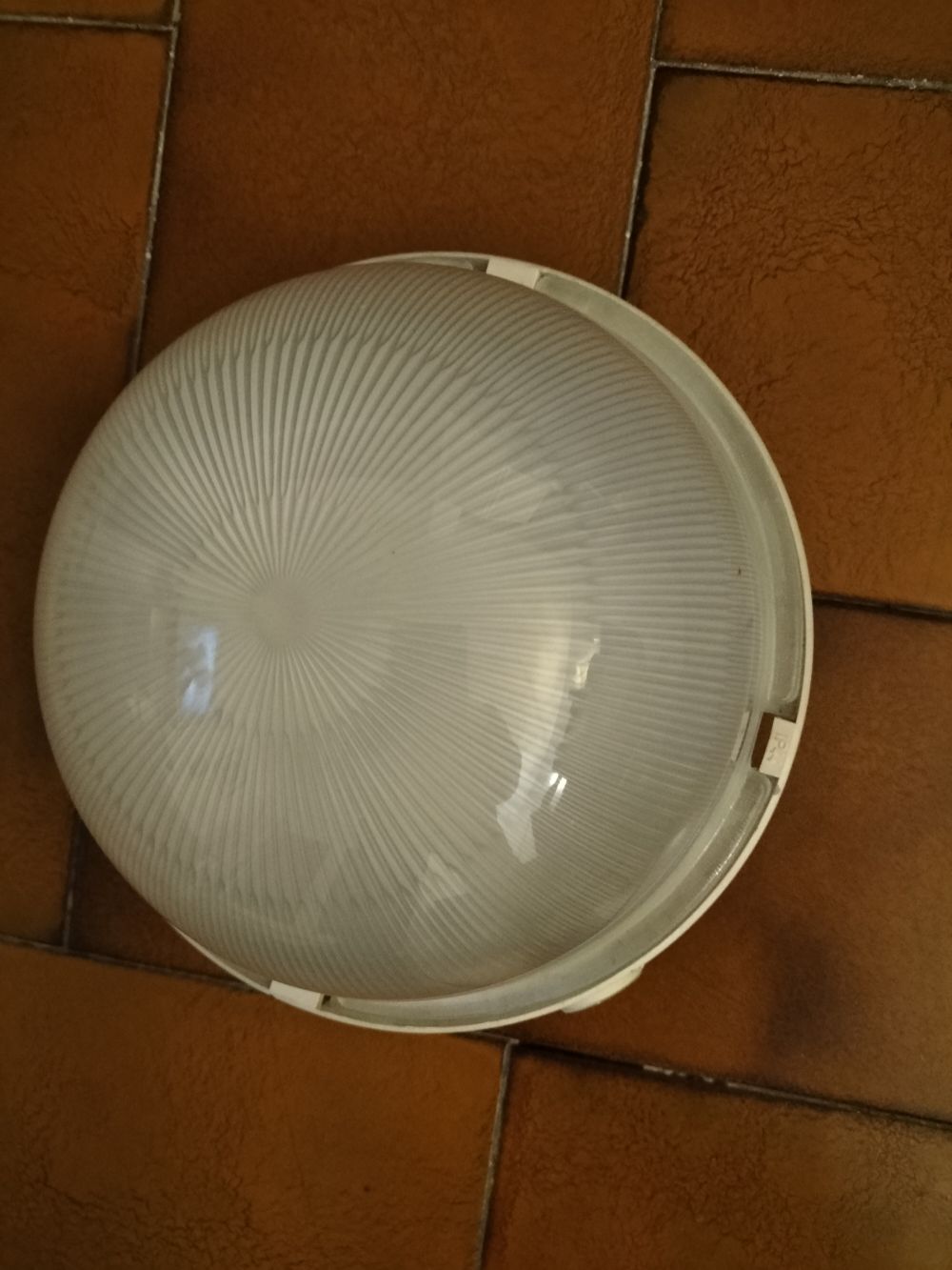 Descrizione:Vetro. Base plastica e metallo. Per lampadina attacco grande
