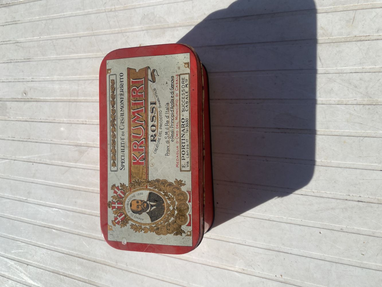Scatola di latta, vecchia e rovinata internamente ma mi dicono rara per i collezionisti.