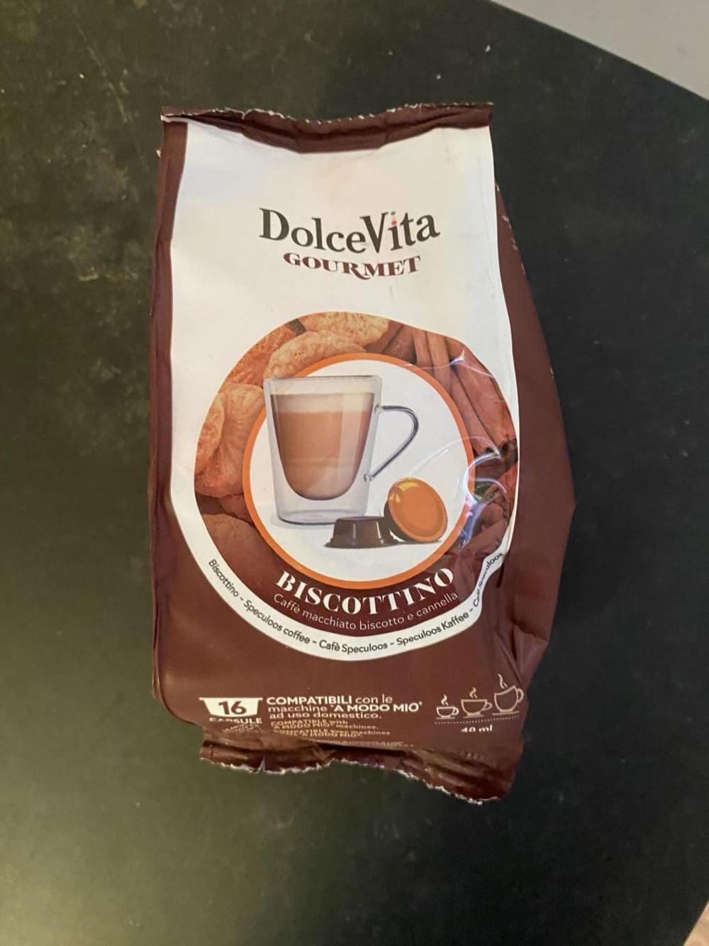 Confezione nuova di 16 capsule di biscottino, caffè macchiato al biscotto e cannella. Scadenza in foto, ne ho anche sfuse che ho aperto per assaggiarle