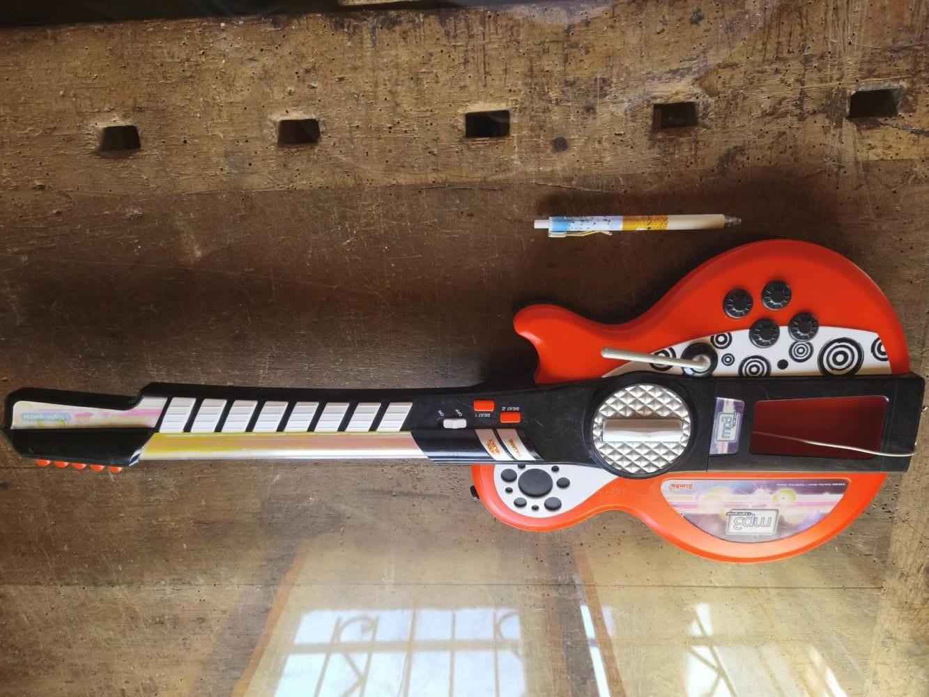 Funziona a pile ed emette vari suoni in base ai tasti premuti. Si può collegare al cellulare o ad un MP3 tramite il cavetto.