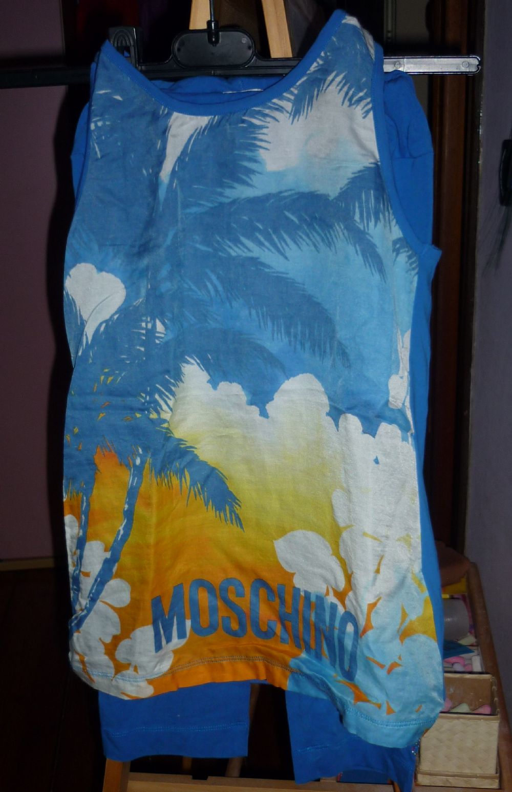 Completo bimbapantaloni e canotta - ''Moschino'' eta 8 anni 128 cm (da etichetta) in realta'' veste poco (6 -7 anni) composizione 90%cotone e 10% elastam