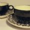 | 1 tazza da tè con piattino, motivo bianco e nero molto carino Integra ma molto vissuta, con l''interno leggermente screpol... | ||