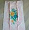 | Asciugamano medio di un buon cotone color rosa con fiori colorati in centro. Misure: 60 per 102cm. | ||