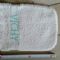 | Lavetta di spugna nuova color bianca con scritta verde acqua.si infila la mano e si può usare x lavarsi o asciugarsi. | ||