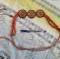 | Cinta etnica fatta da un doppio cordino, delle pietre dure arancioni e dei medaglioni in metallo scurito. La penna per le... | ||