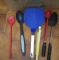 | Lotto di matite molto usate, due temperini, 2 dorsi in plastica, tampone spiderman con timbri e forbice ci glitter. Righel... | ||